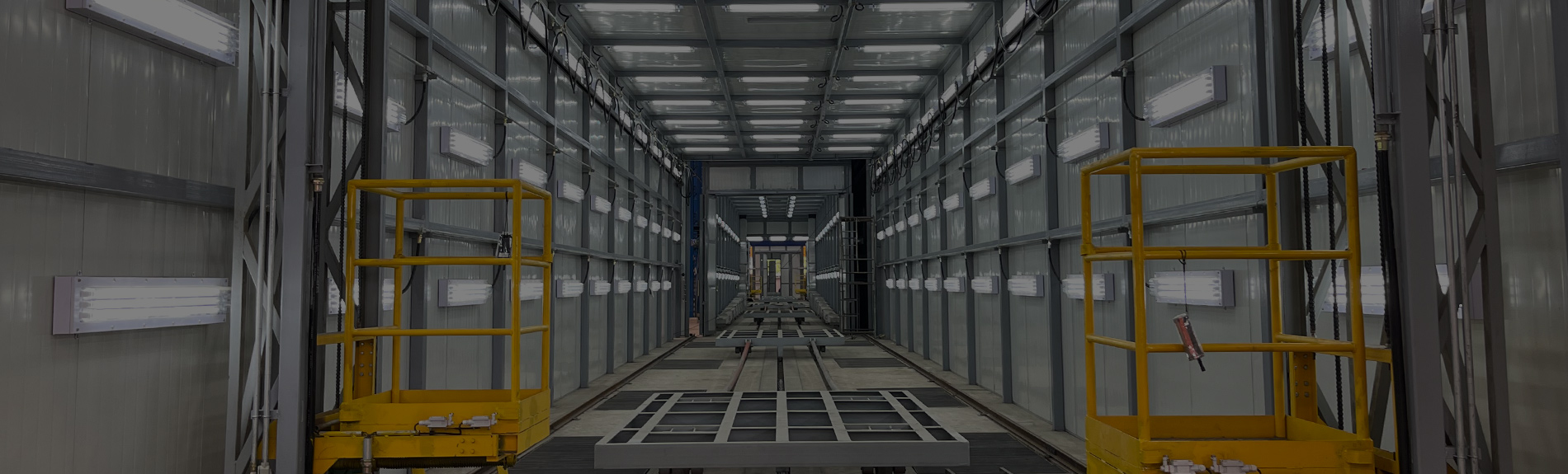 備由機(jī)器人噴漆房、人工補(bǔ)漆房、分路轉(zhuǎn)軌系統(tǒng)、烘干房、廢氣處理系統(tǒng)、電控系統(tǒng)等組成